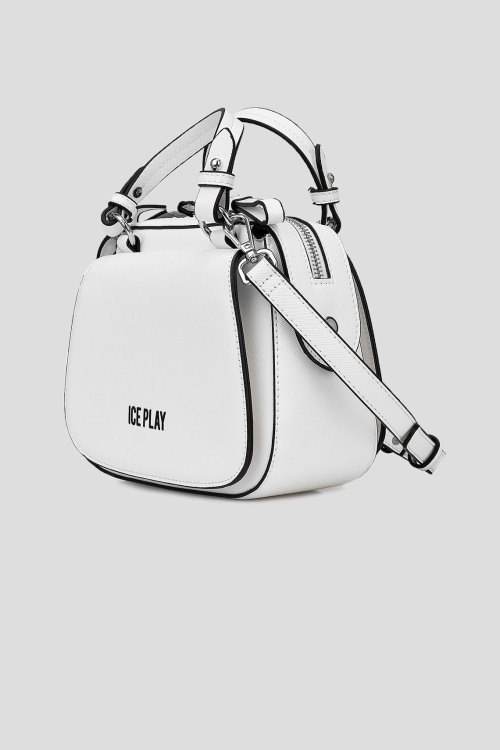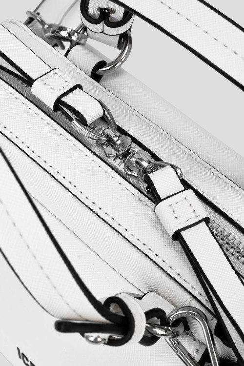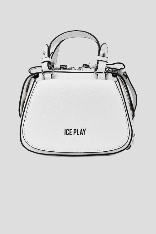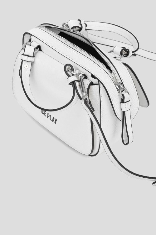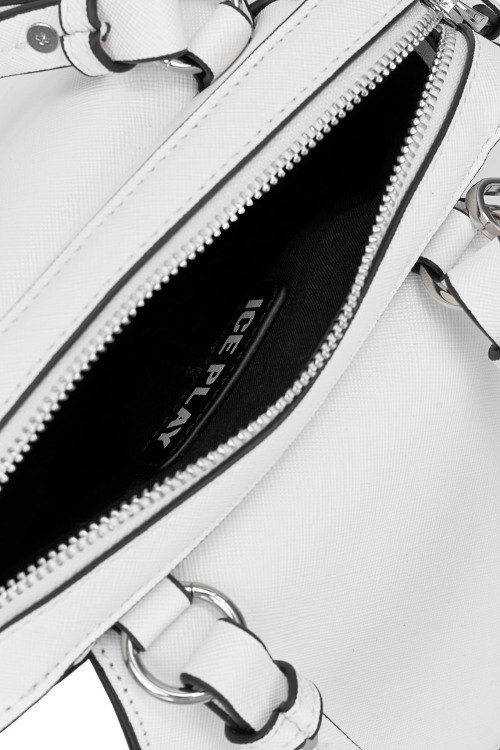 Детали: Женская белая сумка-тоут из экокожи от Ice Play (Айс Плей). Принт с логотипом, серебристая фурнитура, накладной карман спереди, две круглые ручки, съемный плечевой ремень, застежка-молния, одно отделение. Размеры: высота: 18 см, ширина: 22 см, ширина дна: 8 см