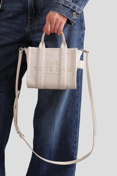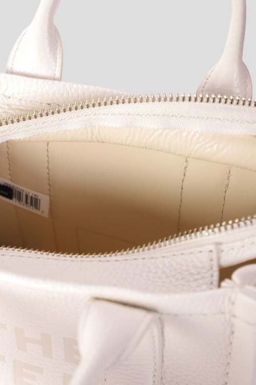 Детали: Женская белая сумка-тоут Small Tote Bag из натуральной кожи от Marc Jacobs (Марк Джейкобс). Одно отделение, застежка на молнию, дизайн с тиснением в виде логотипа бренда, две верхние ручки, съемный плечевой ремень. Измерения: 26 x 21 x 13 см