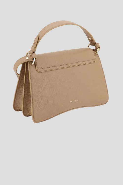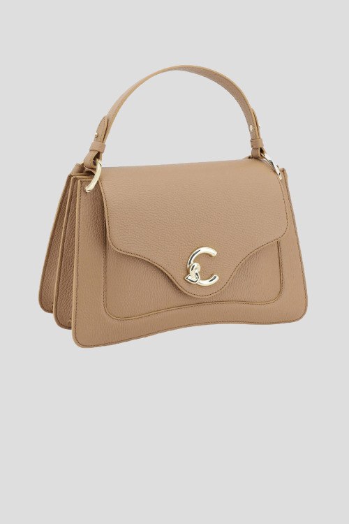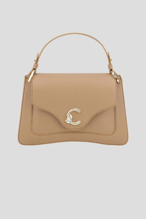 Детали: Женская бежевая сумка-тоут из натуральной кожи от Coccinelle (Кочинелле). Два отделения, один карман, дизайн с клапаном, металлическая фурнитура, верхняя ручка, логотип бренда, плечевой ремень. Размеры: 30x18x10 см