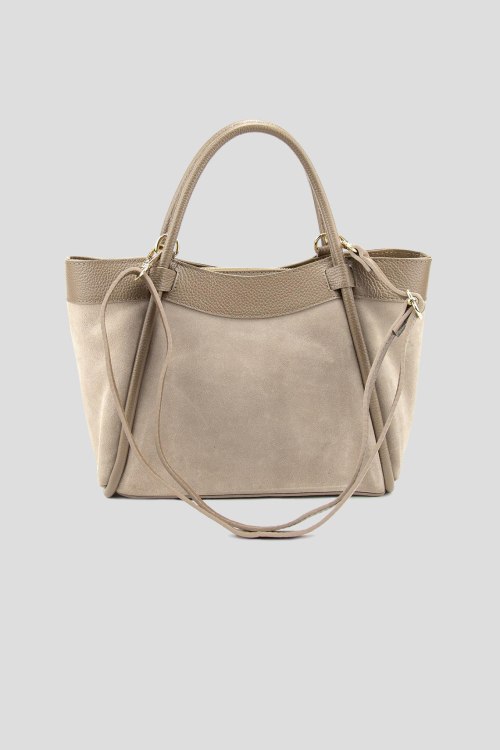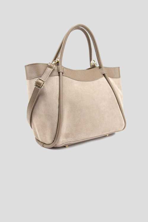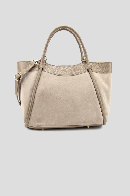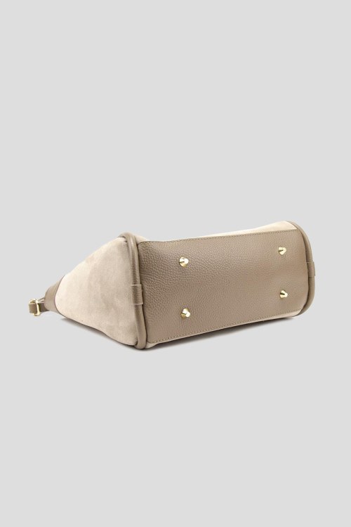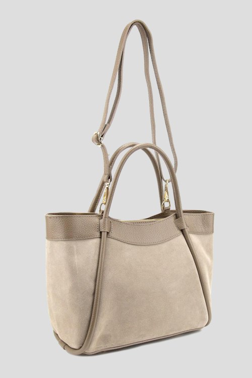 Детали: Женская бежевая сумка-тоут из натуральной замши от Firenze Italy (Фирензе Итали). Одно отделение, застежка на молнию, внутренние карманы, две верхние ручки, регулируемый плечевой ремень, металлические ножки. Размер: 29(36) x 24 x 12 см