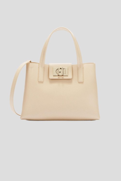 Детали: Женская бежевая сумка-тоут из натуральной кожи от Furla (Фурла). Два отделения, дизайн с клапаном, металлическая фурнитура, две верхние ручки, съемный плечевой ремень, внутренний карман на молнии. Размер: 28х19х11 см