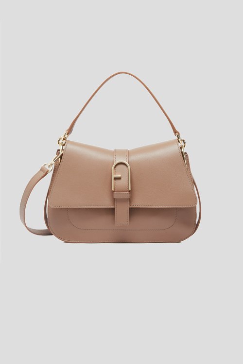 Детали: Женская бежевая сумка-тоут Flow из натуральной кожи от Furla (Фурла). Одно отделение, застежка с клапаном на магнит, внутренний карман, внешний карман, металлический логотип бренда, золотистая фурнитура, ручка для носки в руках, съемный плечевой ремень. Измерения: 26 х 16 х 8 см, ручка 100 см