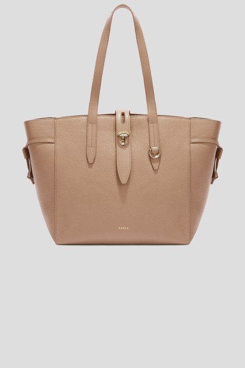 Детали: Женская бежевая кожаная сумка-тоут Net от Furla (Фурла). Модель из зернистой кожи, логотип спереди, золотистая фурнитура, две ручки, застежка-молния, одно отделение. Размеры: 28,5 x 27 х 16 см