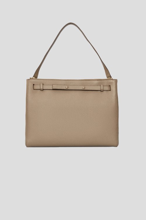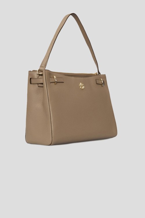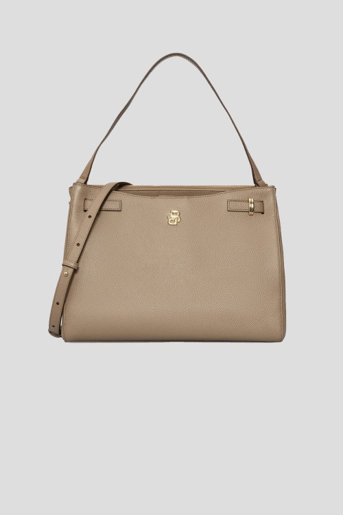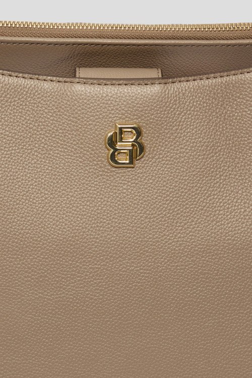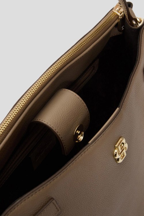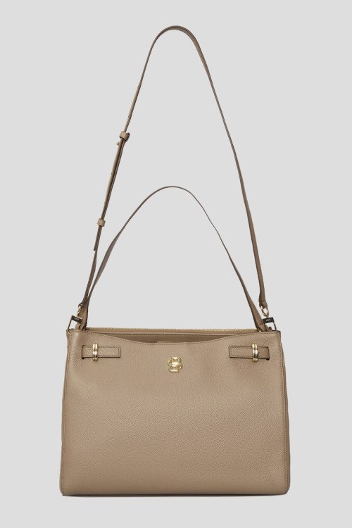 Детали: Женская бежевая кожаная сумка-тоут Beyond от Hugo Boss (Хуго Босс). Модель из зернистой кожи, логотип спереди, золотистая фурнитура, застежка на магнит и молнию, верхняя ручка, съемный плечевой ремень, два отделения. Размеры: 26 x 35 x 16 см