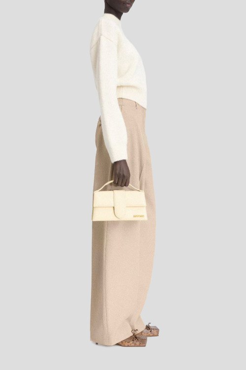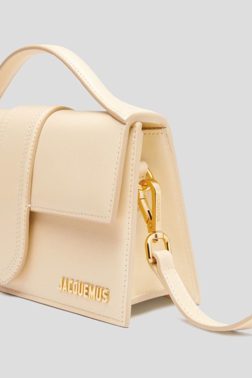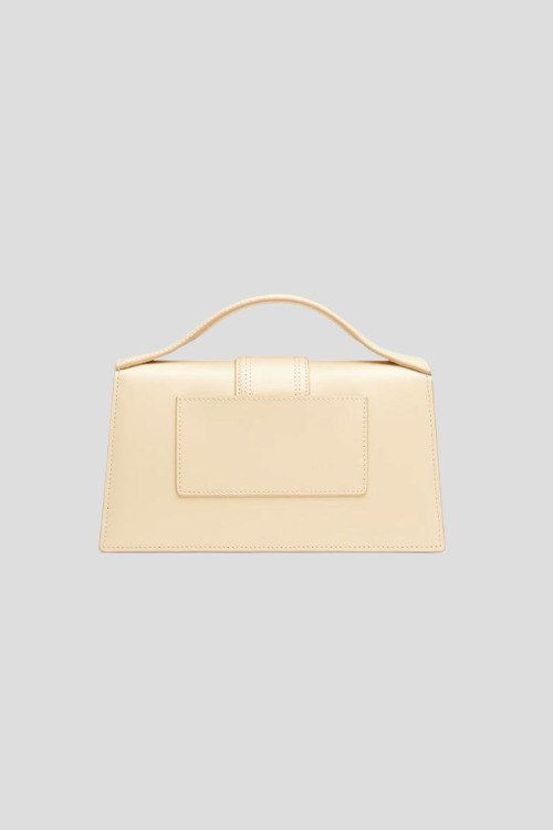 Детали: Женская бежевая сумка-тоут Le Grand Bambino из натуральной кожи от Jacquemus (Жакмюс). Одно отделение, застежка с клапаном на магнит, верхняя ручка, съемный плечевой ремень с регулировкой. Измерения: 23,5 см x 13 см