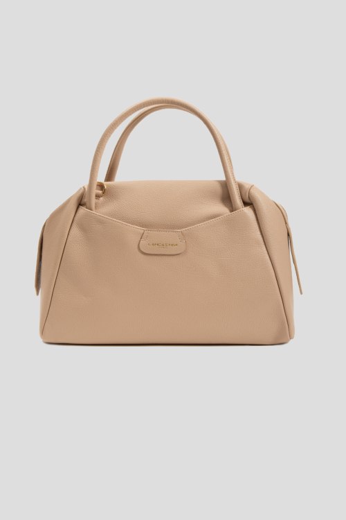 Детали: Женская бежевая сумка-тоут из натуральной кожи от Lancaster (Ланкастер). Одно отделение, застежка на молнию, внутренний карман на молнии, две верхние ручки, текстильный плечевой ремень с логотипом бренда. Измерения: ширина 35 см, высота 25 см, глубина 14 см