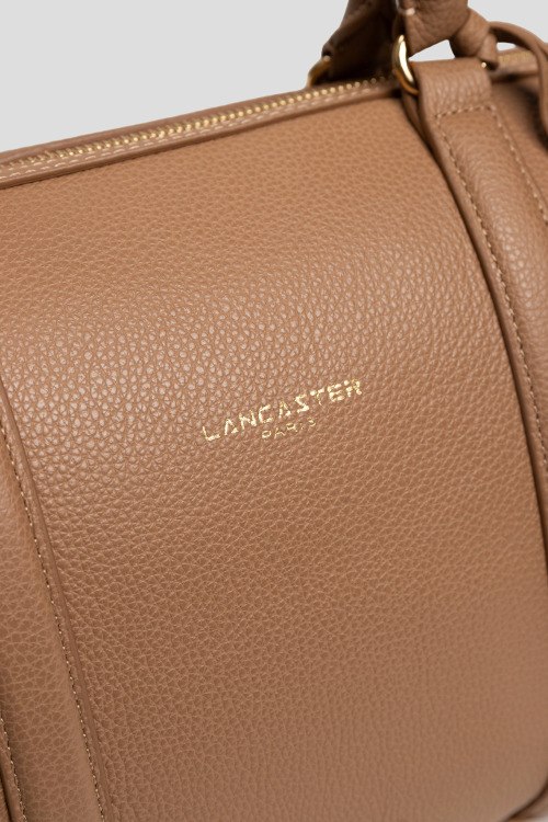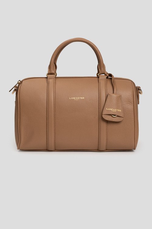 Детали: Женская бежевая кожаная сумка сэтчел от Lancaster (Ланкастер). Модель из зернистой кожи, принт логотипа, две круглые ручки, съемный плечевой ремень, застежка-молния, одно отделение. Размеры: высота: 23 см, ширина: 33 см, высота ручек: 10 см, ширина по дну: 15 см