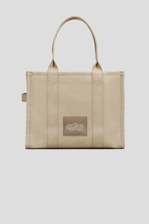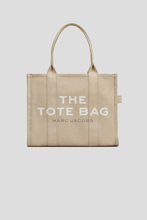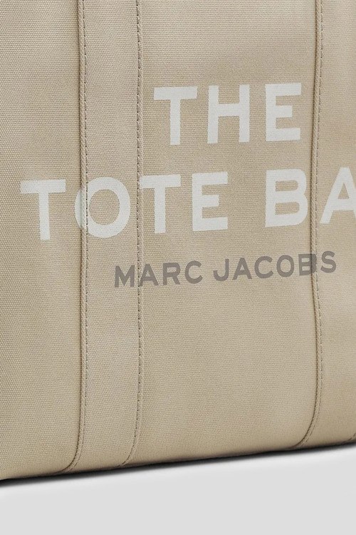 Детали: Женская бежевая текстильная сумка-тоут The Canvas Large от Marc Jacobs (Марк Джейкобс). Принт с логотипом, две круглые ручки, застежка-молния, одно отделение. Размеры: 42 x 16 x 34 см; высота ручек 24 см