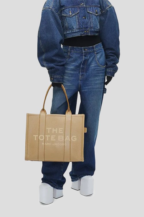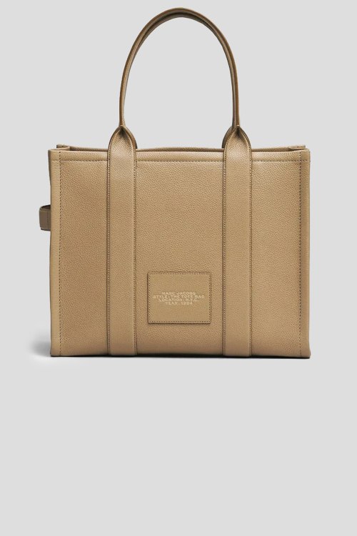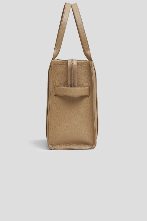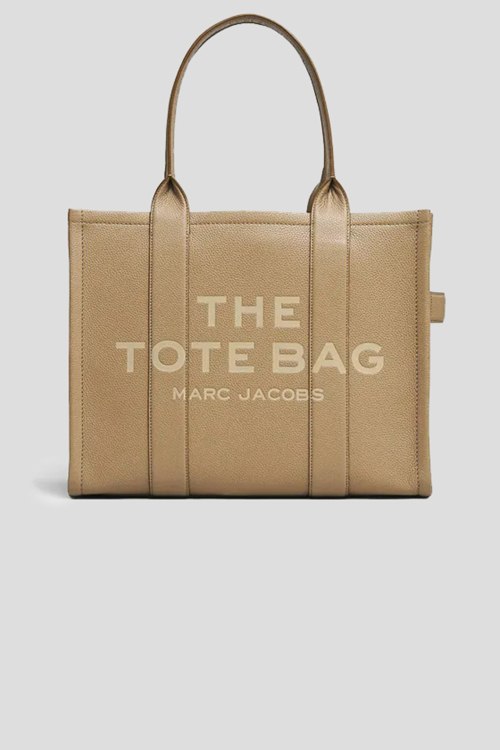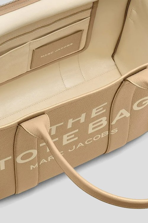 Детали: Женская бежевая кожаная сумка-тоут The Leather Large Tote Bag от Marc Jacobs (Марк Джейкобс). Модель из зернистой кожи, тиснение логотипа, две круглые ручки, застежка-молния, одно отделение. Размеры: 42 x 16 х 34 см