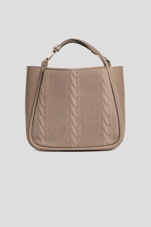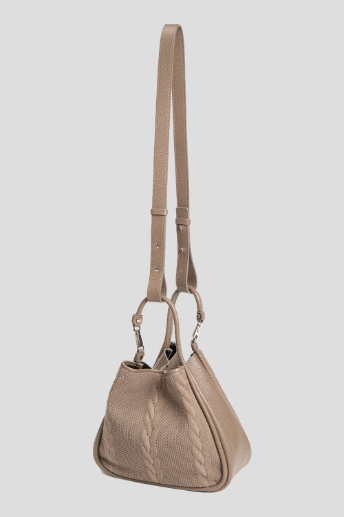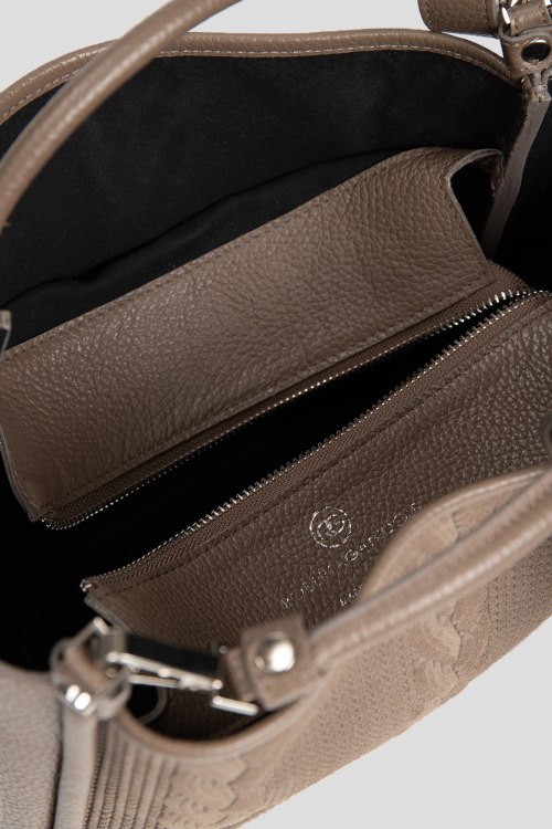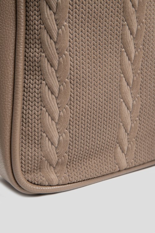 Детали: Женская темно-бежевая сумка-тоут из натуральной кожи и замши от Roberta Gandolfi (Робэрта Гандолфи). Комбинированный дизайн, одно отделение, застежка на молнию, две верхние ручки, съемный плечевой ремень. Измерения: ширина: 25 см, высота: 22 см, глубина: 12 см