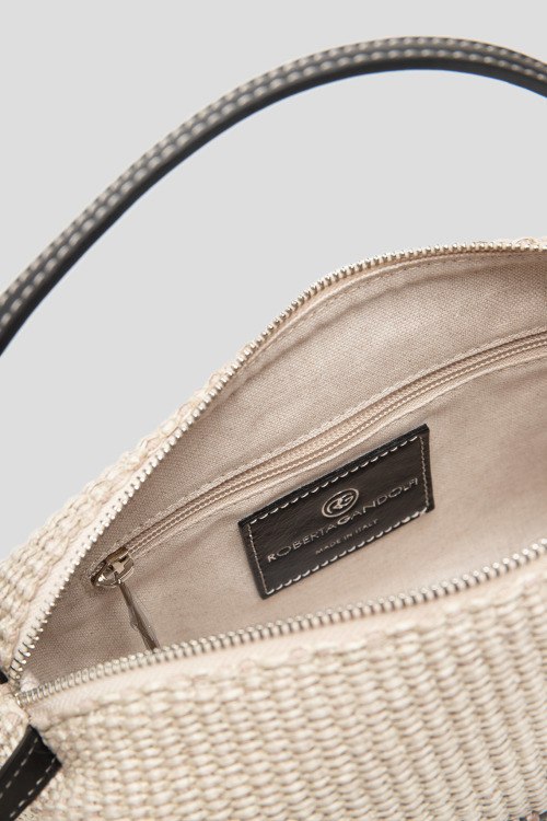 Детали: Женская бежевая сумка из кожи и рафии от Roberta Gandolfi (Робэрта Гандолфи). Одно отделение, застежка на молнию, плетенный дизайн, кожаная вставка спереди, две тонкие ручки. Измерения: высота: 19 см, ширина: 27 см, высота ручек: 13 см, ширина по дну: 11 см
