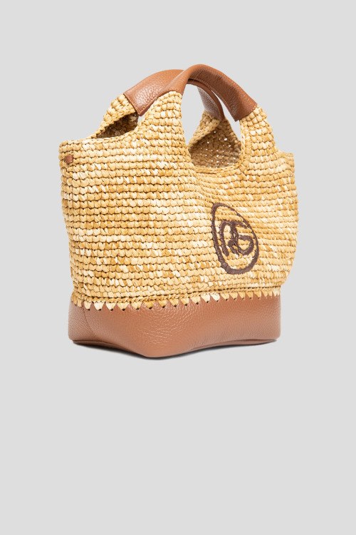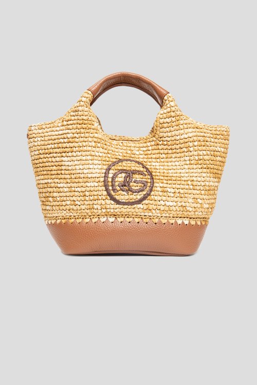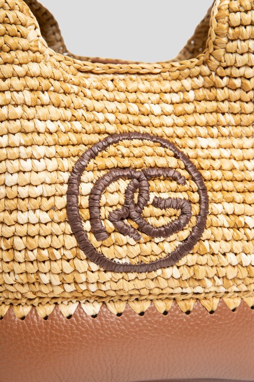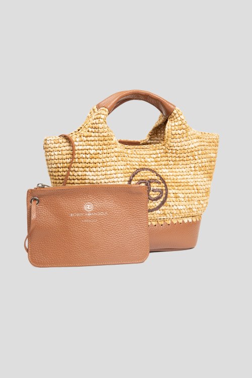 Женская бежевая сумка из кожи и рафии от Roberta Gandolfi (Робэрта Гандолфи). Плетенный дизайн, одно отделение, комбинация материалов, застежка на магнит, вышитый лого спереди, две верхние ручки. Измерения: высота: 21 см, ширина: 34 см, высота ручек: 10 см, ширина по дну: 15 см