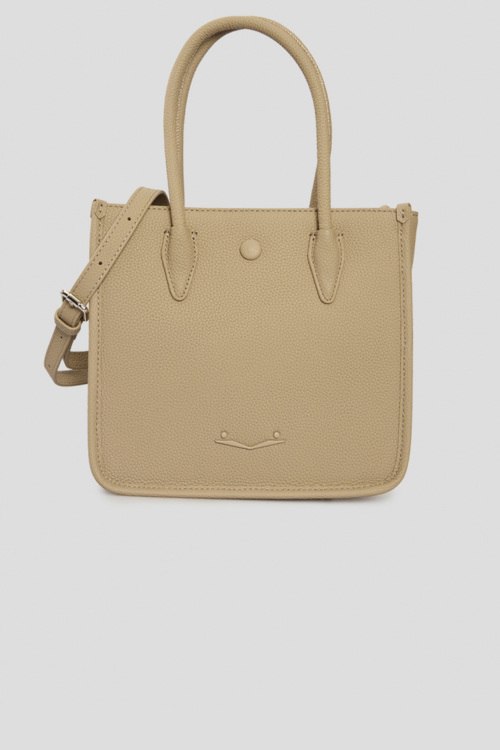 Детали: Женская бежевая кожаная сумка-тоут от Voile Blanche (Вуаль Бланш). Модель из зернистой кожи, логотип спереди, застежка-молния, одно отделение. Две несъемные нерегулируемые ручки высотой 15,5 см, одна съемная регулируемая ручка высотой 50 см. Размеры: 23 х 21 х 10 см