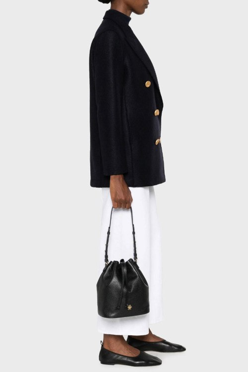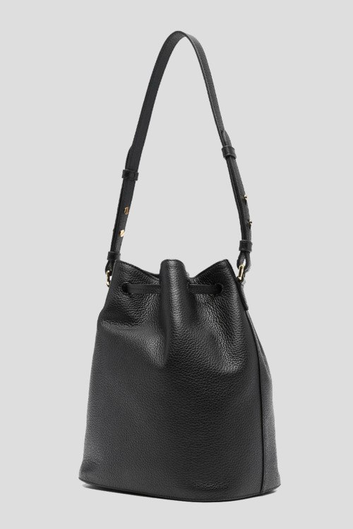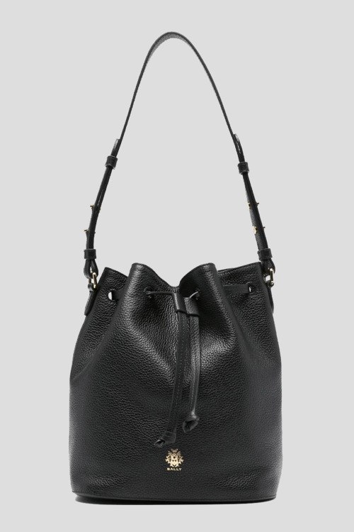 Детали: Женская черная кожаная сумка-мешок Code от Bally (Балли). Модель из зернистой кожи, принт логотипа, золотистая фурнитура, верх на затяжке, одно отделение, регулируемый плечевой ремень. Размеры: высота: 22 см, ширина: 19 см, ширина по дну: 12 см