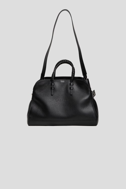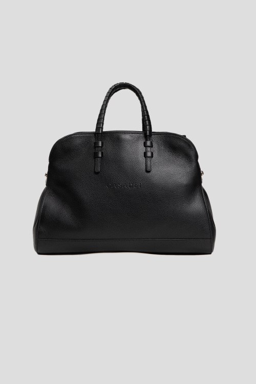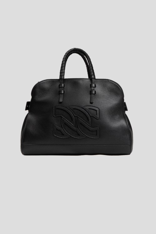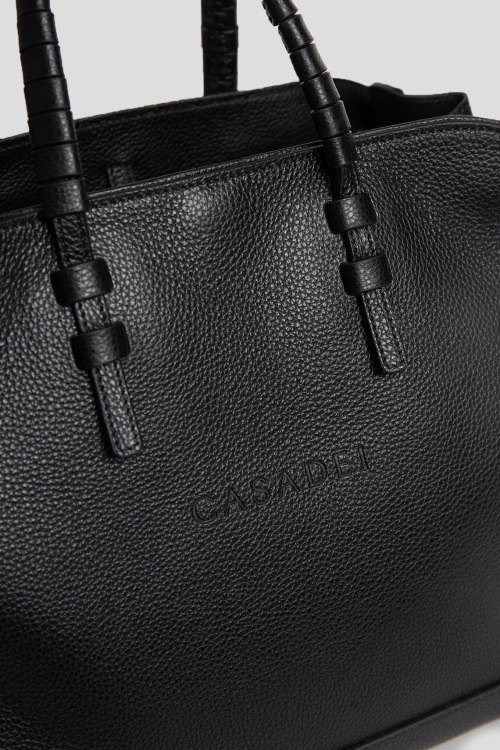 Детали: Женская черная кожаная сумка-тоут Park Avenue от Casadei (Касадей). Модель из зернистой кожи, логотип спереди и сзади, серебристая фурнитура, две плетеные ручки, съемный плечевой ремень, одно отделение, пять карманов. Размеры: высота: 22 см, ширина: 36 см, высота ручек: 12 см, ширина по дну: 17 см