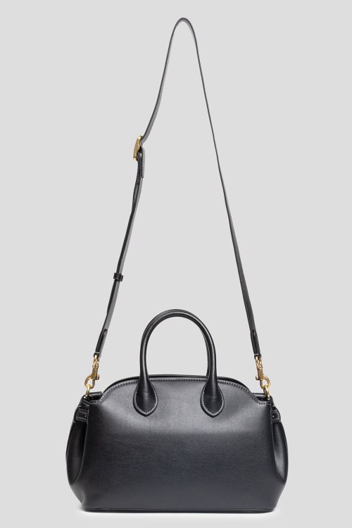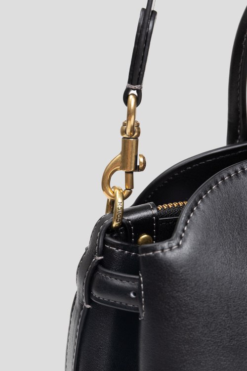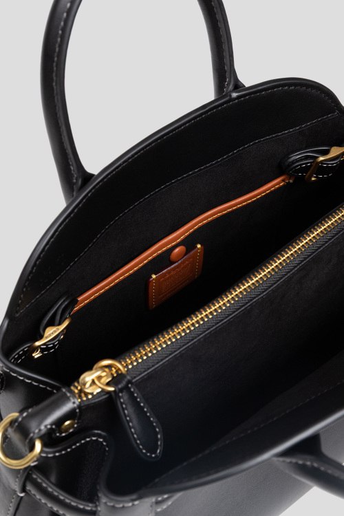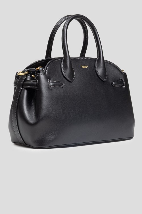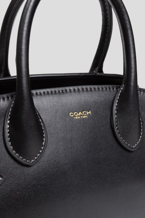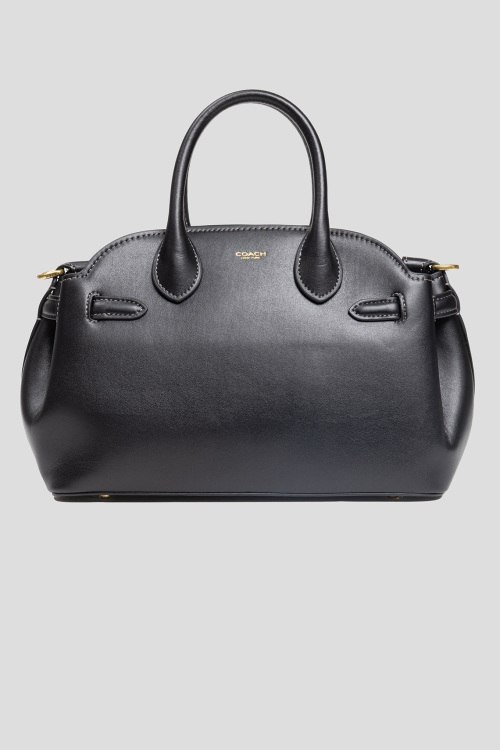 Детали: Женская черная кожаная сумка-тоут Empire от Coach (Коуч). Модель из гладкой кожи, логотип спереди, золотистая фурнитура, две круглые ручки, съемный плечевой ремень, застежка-молния, три отделения. Размеры: 32 х 19 х 12 см