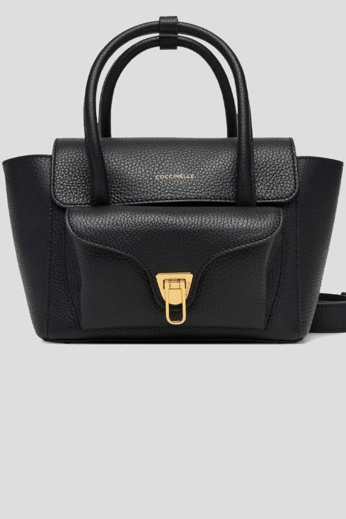 Детали: Женская черная кожаная сумка-тоут Double Beat от Coccinelle (Кочинелле). Модель из зернистой кожи, логотип спереди, золотистая фурнитура, отстегивающийся карман-клапан с дополнительной цепочкой, две круглые ручки, съемный плечевой ремень, откидной клапан с застежкой на магнит, одно отделение. Размеры: 27 x 15 x 11 см