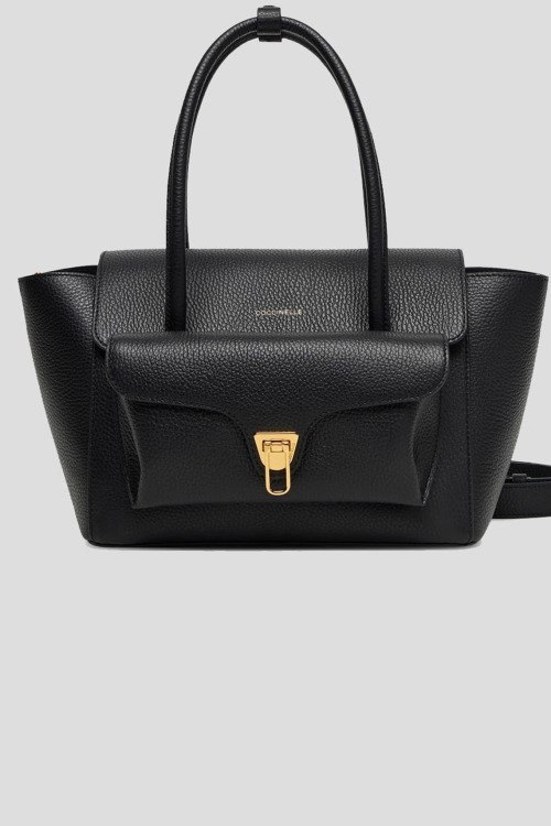 Детали: Женская черная кожаная сумка-тоут Double Beat от Coccinelle (Кочинелле). Модель из зернистой кожи, логотип спереди, золотистая фурнитура, отстегивающийся карман-клапан с дополнительной цепочкой, две круглые ручки, съемный плечевой ремень, откидной клапан с застежкой на магнит, одно отделение. Размеры: 37 x 18 x 14 см