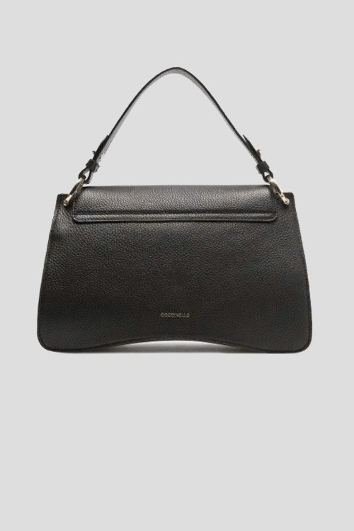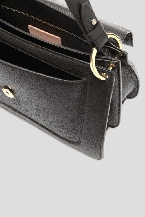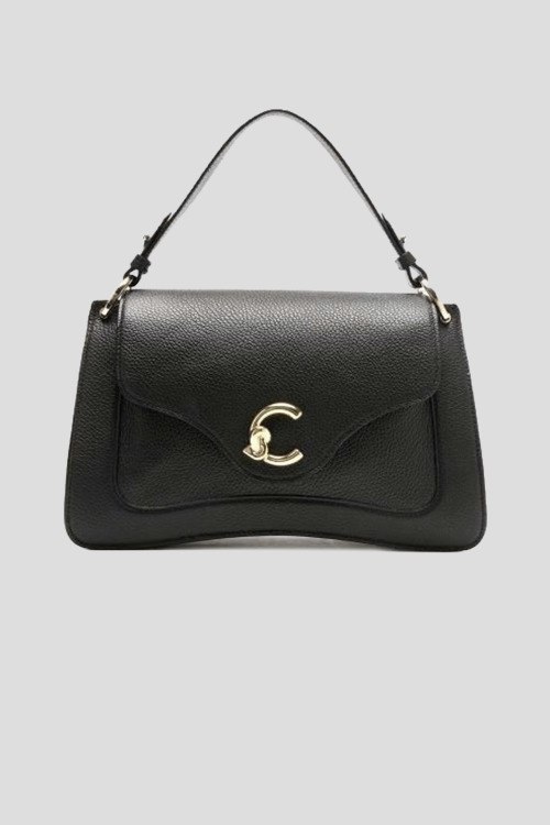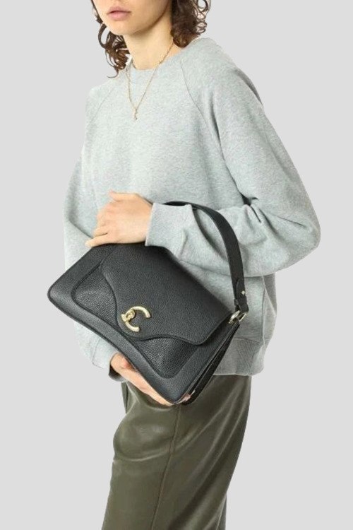 Детали: Женская черная сумка-тоут из натуральной кожи от Coccinelle (Кочинелле). Два отделения, один карман, дизайн с клапаном, металлическая фурнитура, верхняя ручка, логотип бренда. Размеры: 30x18x10 см