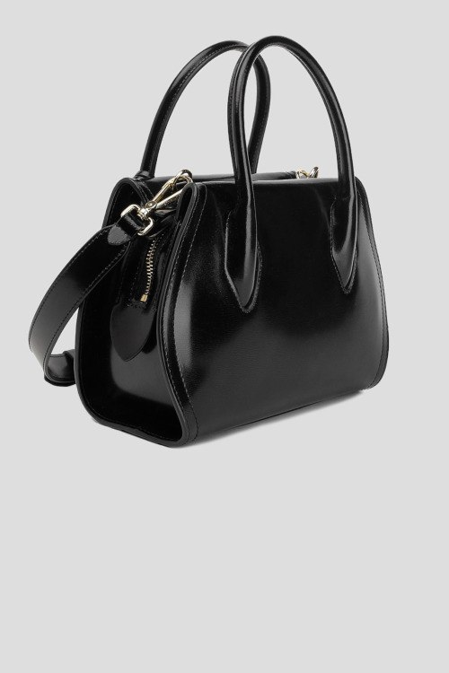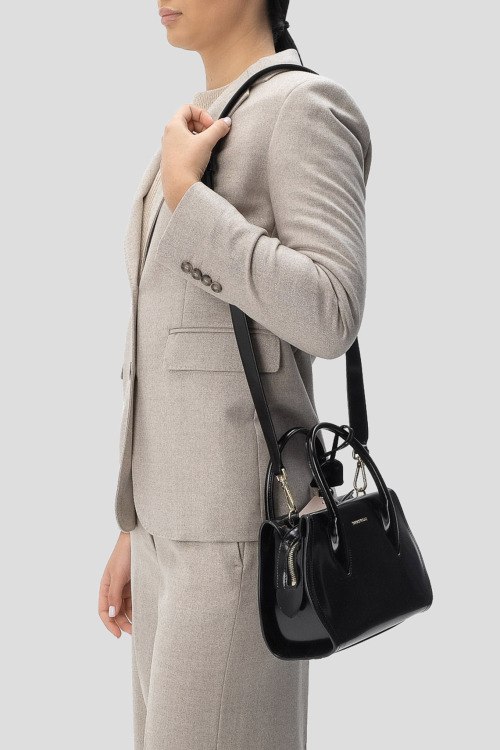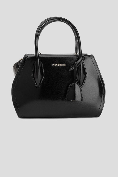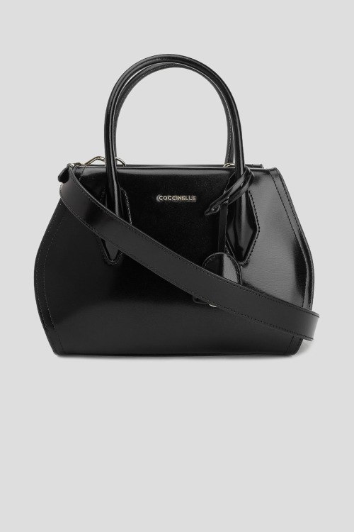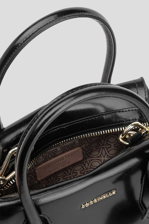 Детали: Женская черная кожаная сумка-тоут от Coccinelle (Кочинелле). Модель из гладкой кожи, золотистая фурнитура, металлический логотип, подвеска с логотипом, две круглые ручки, съемный плечевой ремень, застежка-молния, одно отделение