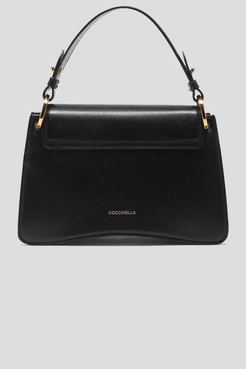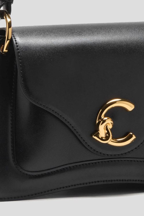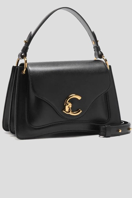 Детали: Женская черная кожаная сумка-тоут С-Ме от Coccinelle (Кочинелле). Модель из гладкой кожи, значок логотипа, золотистая фурнитура, накладной карман, верхняя ручка, съемный плечевой ремень, застежка на магнит, одно отделение. Размеры: 24 × 15,5 × 9 см