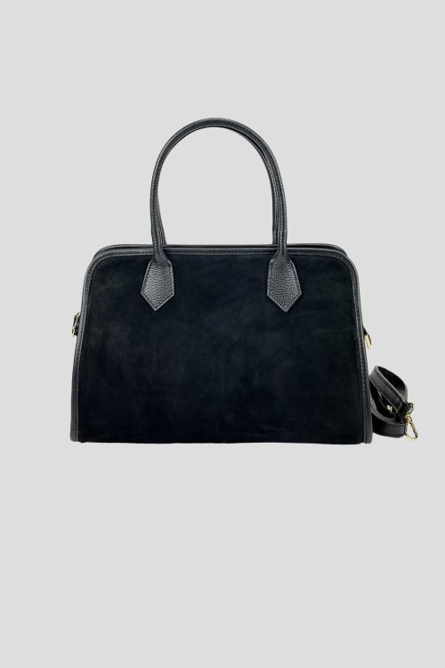 Детали: Женская черная сумка-тоут из натуральной кожи и замши от Firenze Italy (Фирензе Итали). Одно отделение на молнии, внутренний карман на молнии, две верхние ручки, внутренний карман на молнии, съемный плечевой ремень, модель на металлических ножках. Размер: 32,5(30) x 23 x 12 см