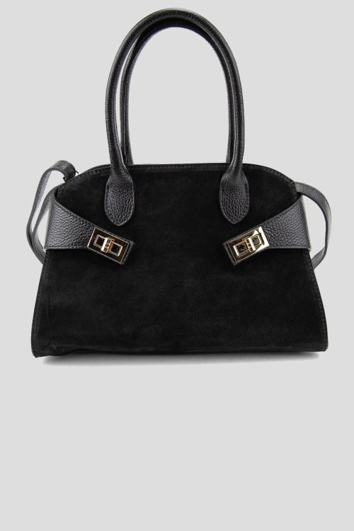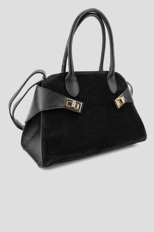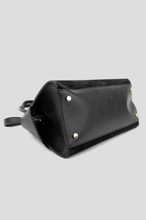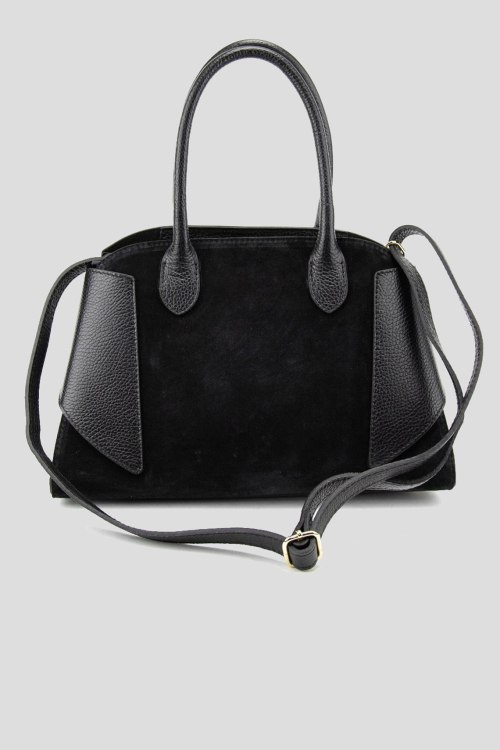 Детали: Женская черная сумка-тоут из натуральной замши от Firenze Italy (Фирензе Итали). Одно отделение, застежка на молнию, две верхние ручки, съемный плечевой ремень. Измерения: 32(27) x 21(35) x 12 см