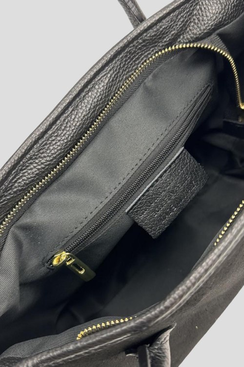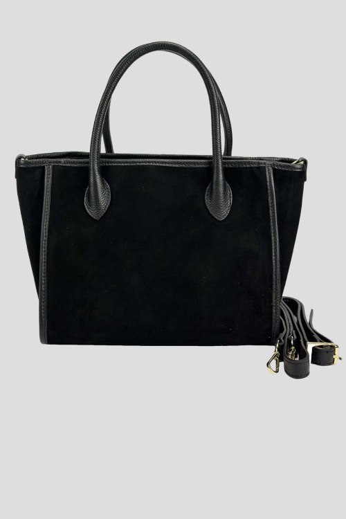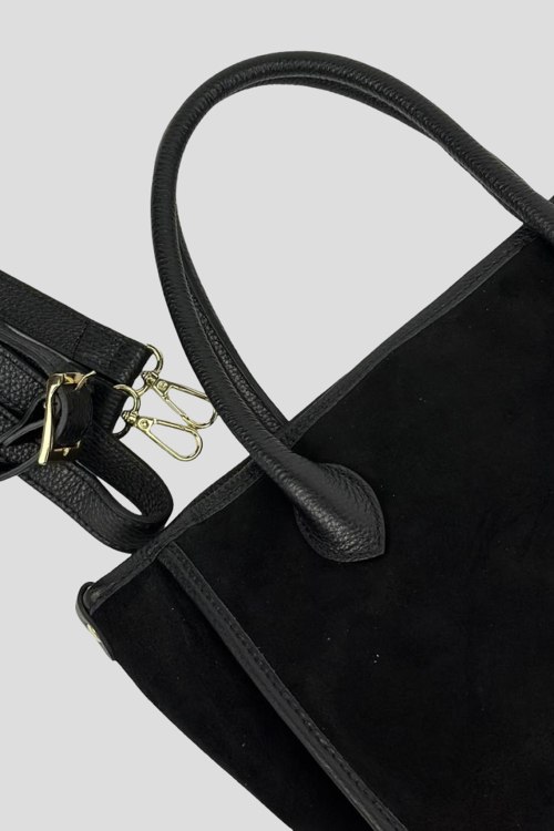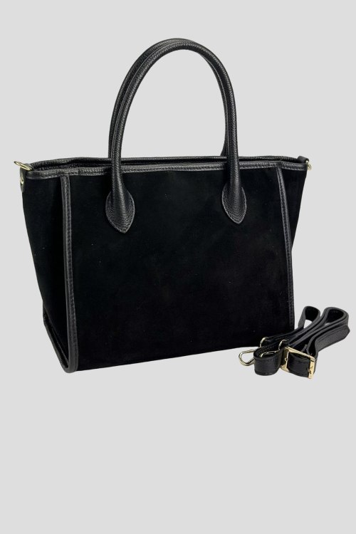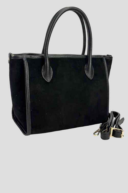 Детали: Женская черная сумка-тоут из натуральной замши от Firenze Italy (Фирензе Итали). Одно отделение, застежка на молнию, две верхние ручки, металлическая фурниутра золотистого цвета, съемный плечевой ремень. Измерения: 36 x 23 x 15 см
