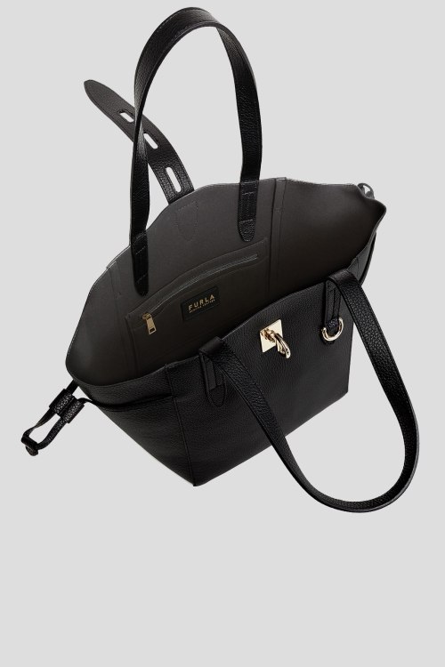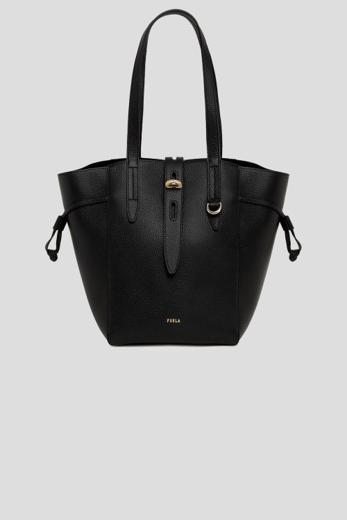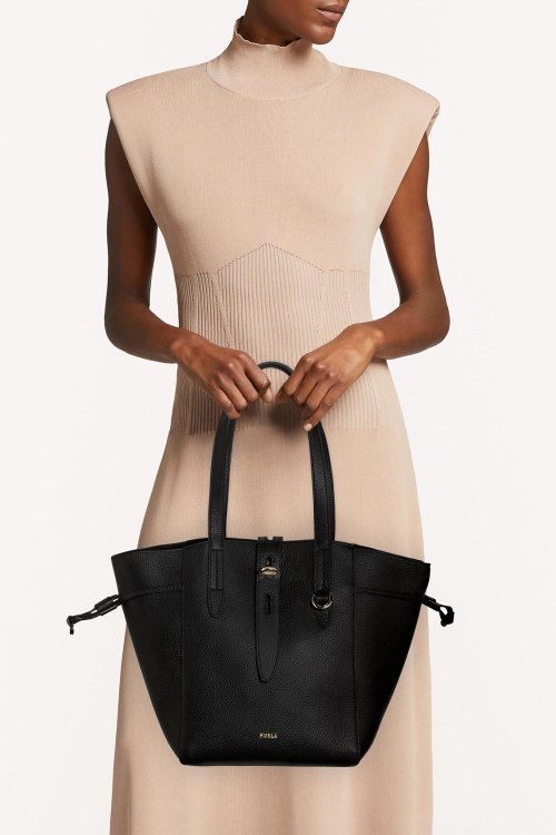 Детали: Женская черная кожаная сумка-тоут Net от Furla (Фурла). Модель Furla NET M TOTE BZT0FUA застегивается на хлястик, внутри: 1 отдел, в котором 2 кармана, один из них на молнии. Размеры: 17 х 19 х 10 см. Высота ручки/ремня: 10/53 см