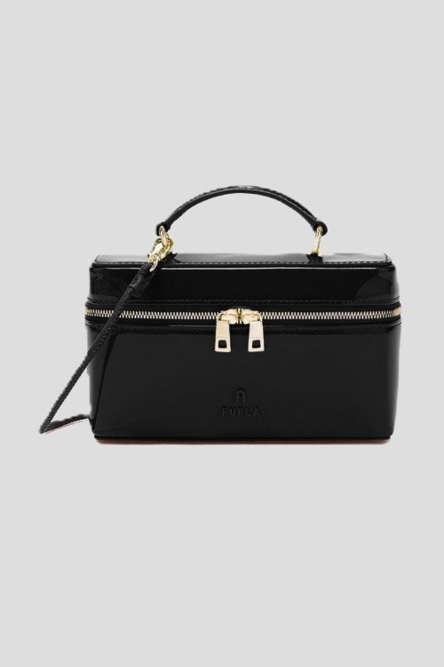 Детали: Женская черная кожаная сумка-тоут Camelia от Furla (Фурла). Модель из гладкой кожи, значок логотипа в тон изделия, золотистая фурнитура, застежка-молния, одно отделение, круглая ручка, съемный плечевой ремень. Размер: 17 x 10 x 5 см