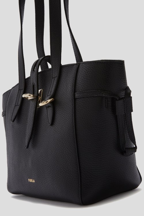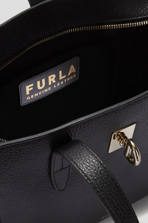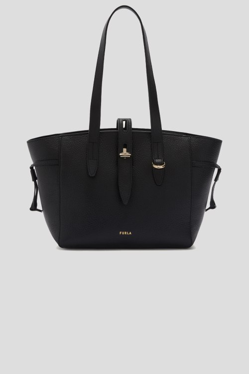 Детали: Женская черная кожаная сумка-тоут Net от Furla (Фурла). Модель из зернистой кожи, логотип спереди, золотистая фурнитура, две ручки, застежка-молния, одно отделение. Размеры: 24 x 21 x 11 см
