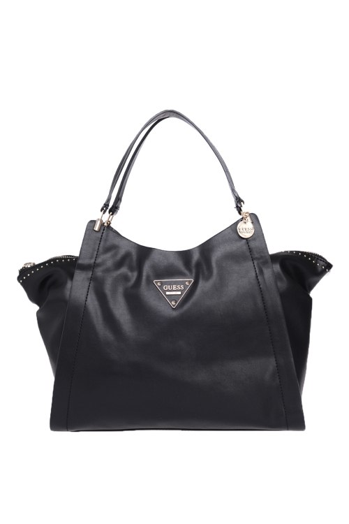 Детали: Однотонная сумка трапециевидной формы на двух ручках. Декорирована металлической фурнитурой и брендовым логотипом
