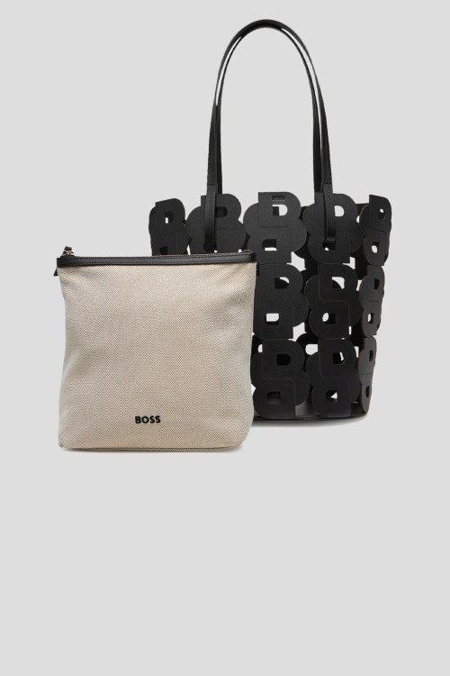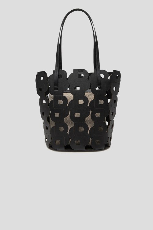 Детали: Женская черная кожаная сумка-тоут Lindah от Hugo Boss (Хуго Босс). Модель из гладкой кожи, вырезная монограмма, две ручки, одно отделение, внутренний текстильный мешок. Размеры сумки: 24 x 27 x 16 см. Размеры мешочка: 20 x 20 x 9 см