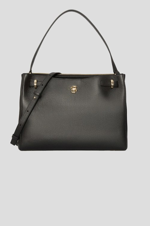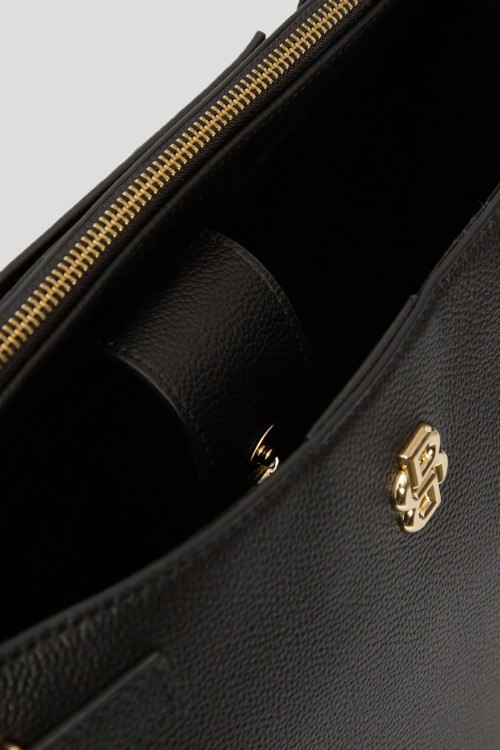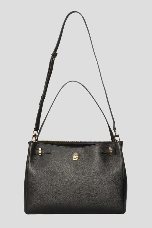 Детали: Женская черная кожаная сумка-тоут Beyond от Hugo Boss (Хуго Босс). Модель из зернистой кожи, логотип спереди, золотистая фурнитура, застежка на магнит и молнию, верхняя ручка, съемный плечевой ремень, два отделения. Размеры: 26 x 35 x 16 см