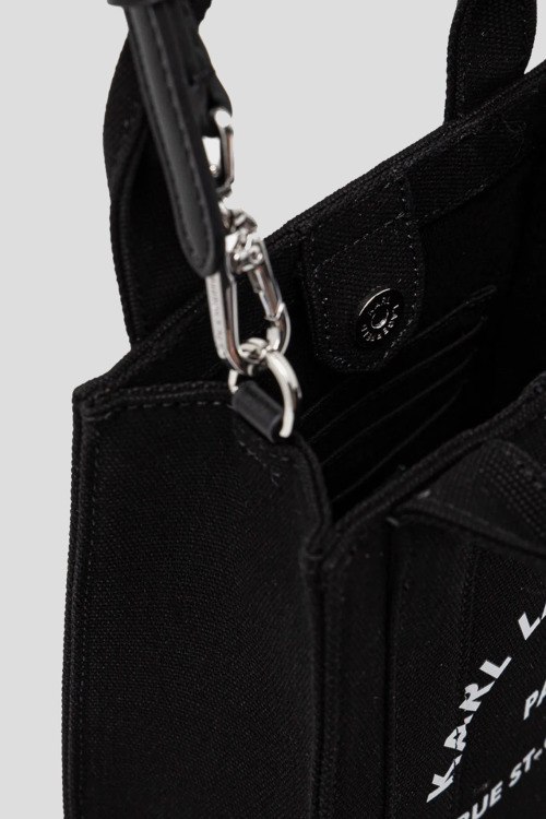 Детали: Женская черная сумка-тоут из хлопка от Karl Lagerfeld (Карл Лагерфельд). Одно отделение, застежка на молнию, две верхние ручки, съемный плечевой ремень, брендированный принт. Измерения: глубина: 8 см, высота: 20,5 см, ширина у основания: 16,5 см.