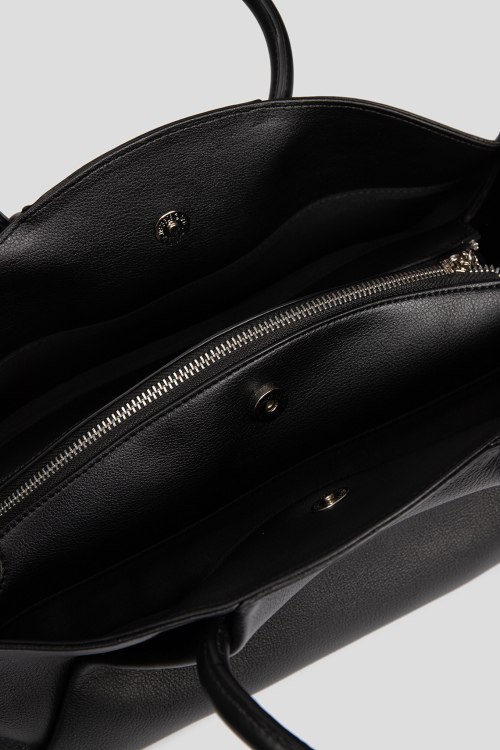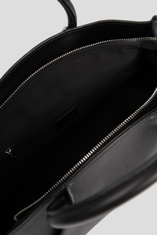 Детали: Женская черная сумка-тоут из натуральной кожи от Lea Lab (Лиа Лаб). Два отделения, застежка на магнит, отделение на молнии, две верхние ручки, съемный плечевой ремень с регулировкой. Измерения: ширина 41 см, высота 23 см, глубина 13 см