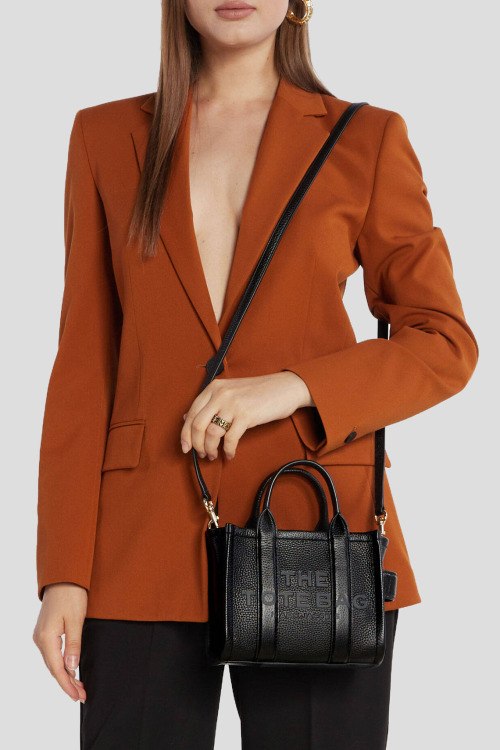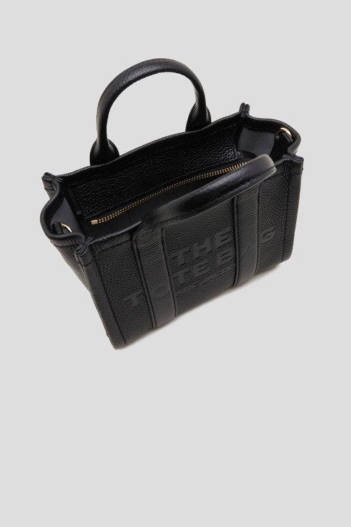 Детали: Женская черная сумка-тоут из натуральной кожи от Marc Jacobs (Марк Джейкобс). Одно отделение, застежка на молнию, дизайн с тиснением в виде логотипа бренда, две верхние ручки, съемный плечевой ремень. Измерения: 18 x 15 x 10 см