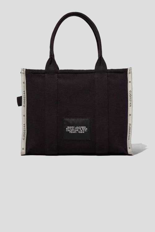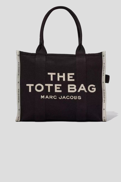 Детали: Женская черная холщовая сумка-тоут The Jacquard Large Tote Bag от Marc Jacobs (Марк Джейкобс). Вышитый логотип, две круглые ручки, застежка-молния, одно отделение. Размеры: 42 х 16 х 34 см. Высота ручки: 24 см