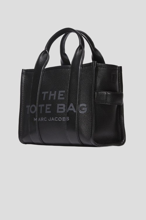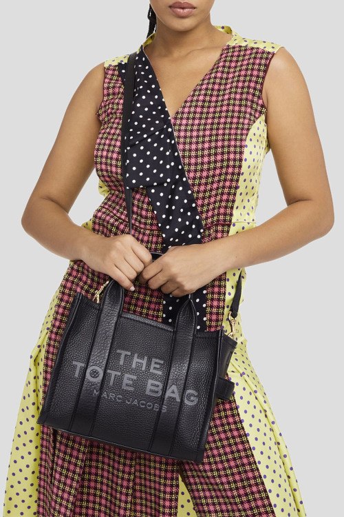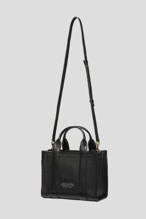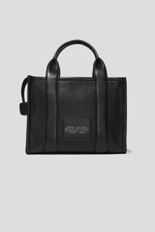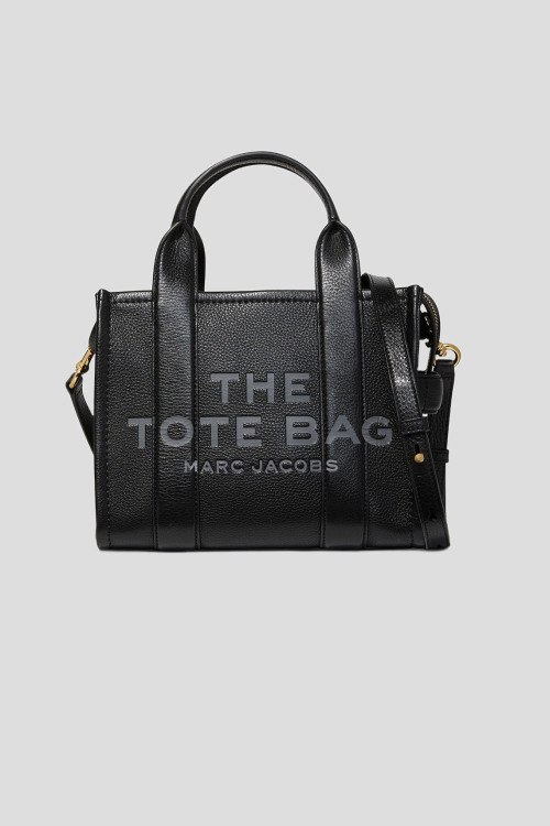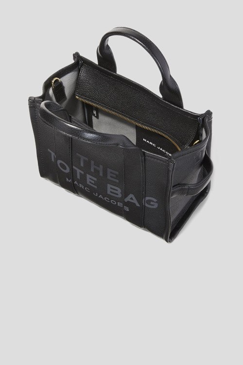 Детали: Женская черная кожаная сумка-тоут The Leather Small от Marc Jacobs (Марк Джейкобс). Модель из зернистой кожи, логотип спереди, нашивка с логотипом сзади, две круглые ручки, съемный плечевой ремень, золотистая фурнитура, застежка-молния, одно отделение, один внутренний карман. Размеры: глубина 13 см, ручка 11 см, высота 21 см, ремешок 69 см, ширина 26 см