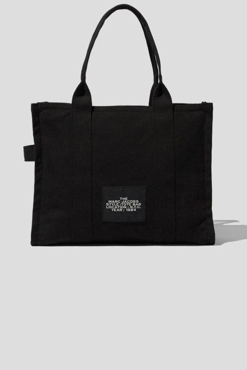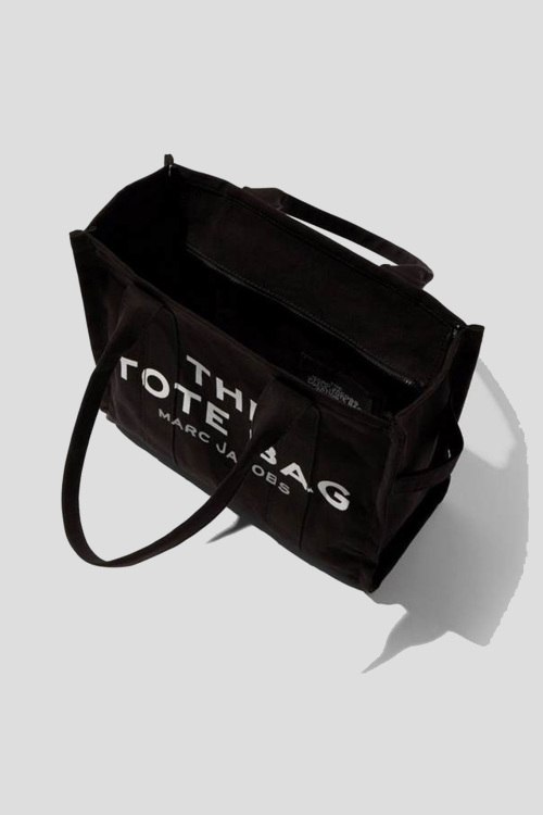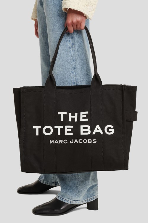 Детали: Женская черная холщовая сумка-тоут The Tote Bag от Marc Jacobs (Марк Джейкобс). Принт с логотипом, две ручки, застежка-молния, одно отделение. Размеры: 42 х 16 х 34 см