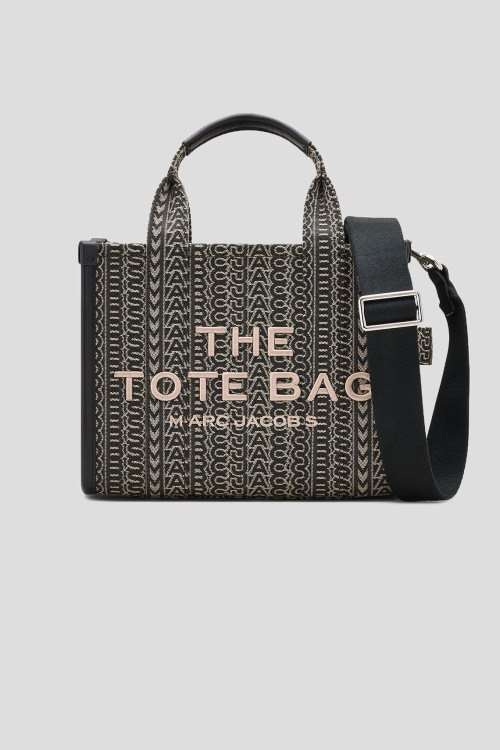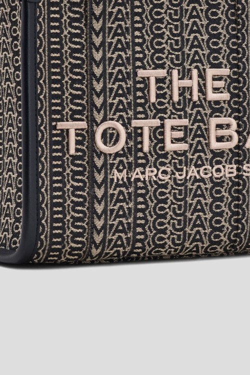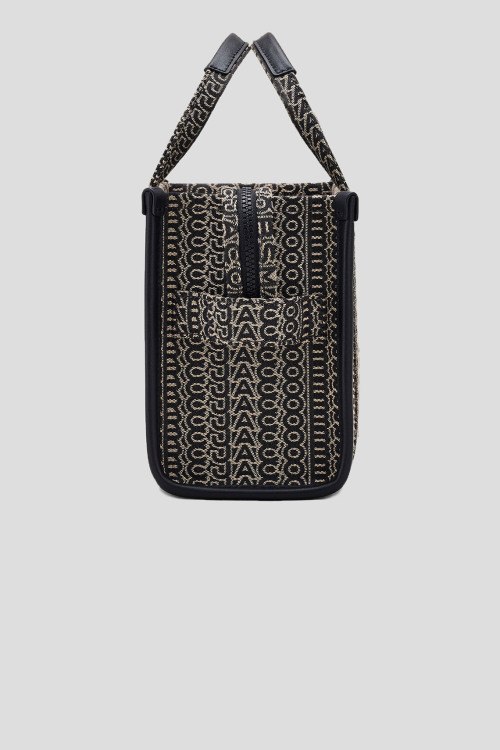 Детали: Женская черно-бежевая текстильная сумка-тоут The Monogram Jacquard Small от Marc Jacobs (Марк Джейкобс). Монограмма по всей поверхности, вышитый логотип, две круглые ручки, съемный плечевой ремень, золотистая фурнитура, застежка-молния, одно отделение, один внутренний карман. Размеры: глубина 13 см, ручка 11 см, высота 21 см, ремешок 144 см, ширина 26 см