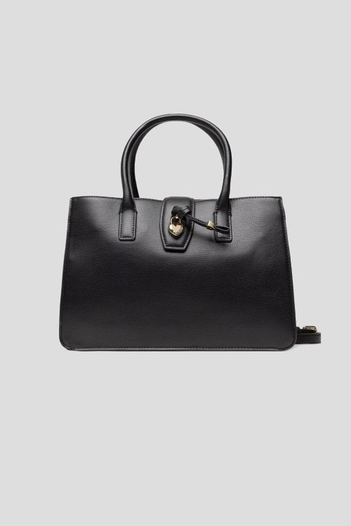 Детали: Женская черная сумка-тоут из экокожи от Moschino (Москино). Подвеска с сердечком, золотистая фурнитура, две круглые ручки, съемный плечевой ремень, одно отделение. Размеры: 32,5 х 23 х 14 см. Высота ручки: 13 см. Максимальная длина ремешка: 112,5 см