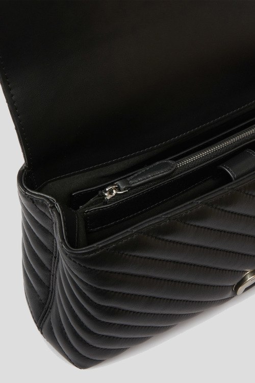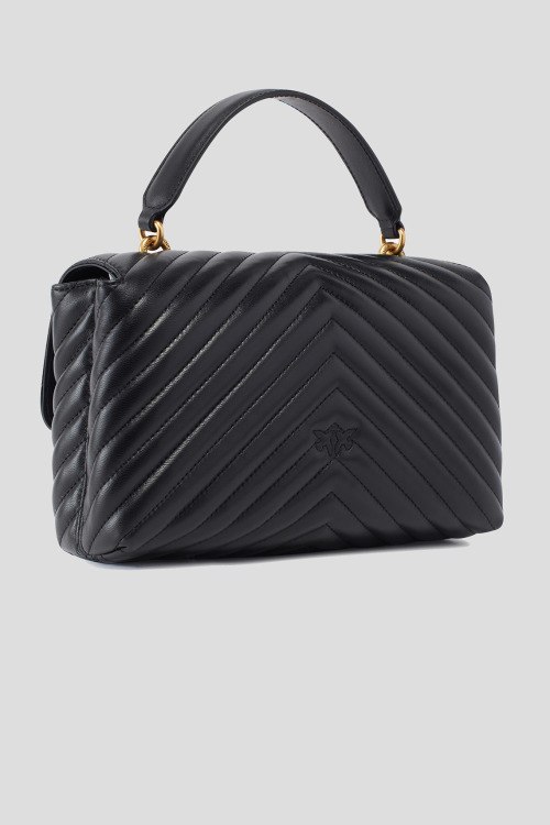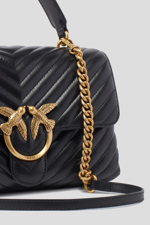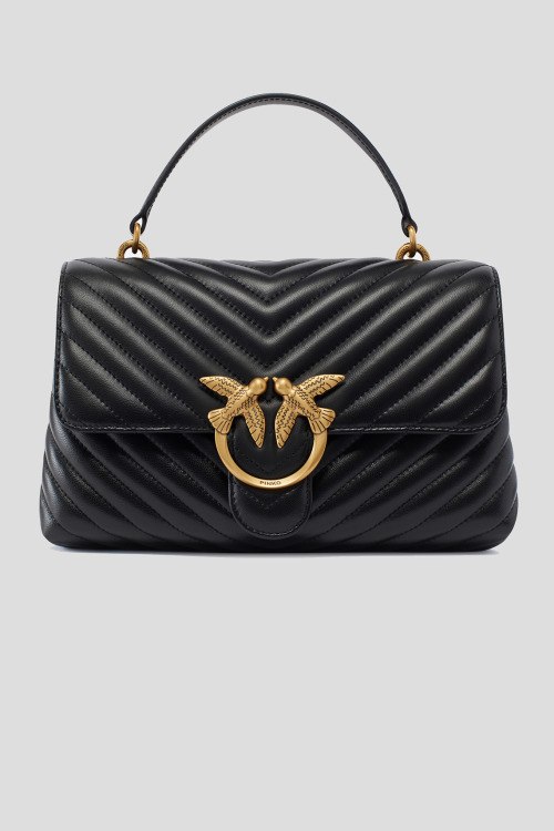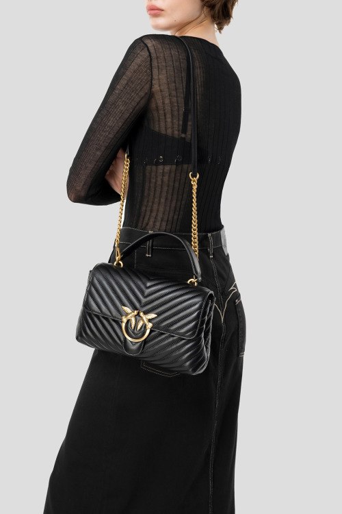 Детали: Женская черная кожаная сумка-тоут Lady Love Bag Puff от Pinko (Пинко). Модель из гладкой кожи, стеганый дизайн, логотип Love Birds, золотистая фурнитура, застежка на магнит, одно отделение, верхняя ручка, цепочка на плечо. Размеры: высота: 17 см, ширина: 8 см, длина: 26 см