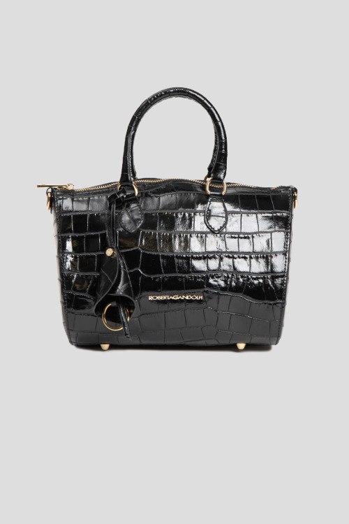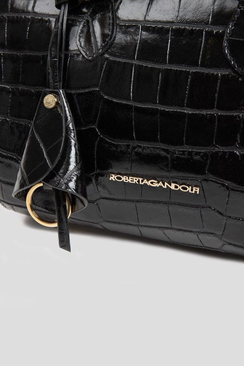 Детали: Женская черная сумка-тоут из натуральной кожи от Roberta Gandolfi (Робэрта Гандолфи). Дизайн с тиснением, одно отделение, застежка на молнию, внутренний карман, две верхние ручки, регулируемый плечевой ремень. Измерения: ширина: 24,5 см, высота: 22 см, глубина: 15,5 см
