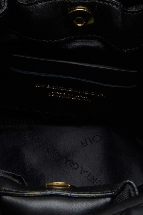 Детали: Женская черная кожаная сумка-тоут Gtreta от Roberta Gandolfi (Робэрта Гандолфи). Модель из гладкой кожи, дизайн с переплетом, золотистая фурнитура, две круглые ручки, съемный плечевой ремень, застежка на магнит, одно отделение. Размеры: высота: 18 см, ширина: 31 см, высота ручек: 10 см, ширина по дну: 11 см