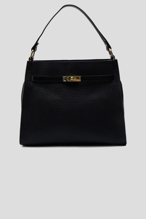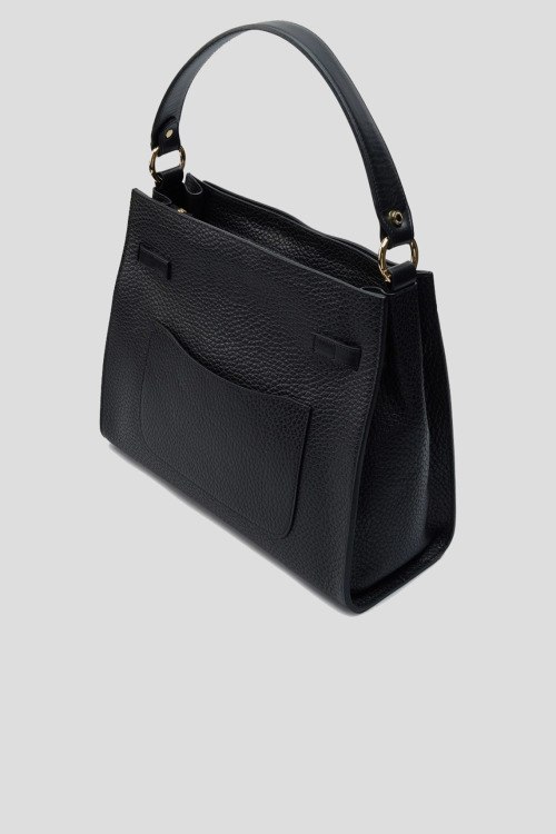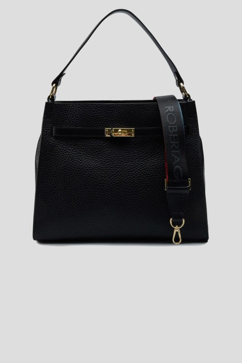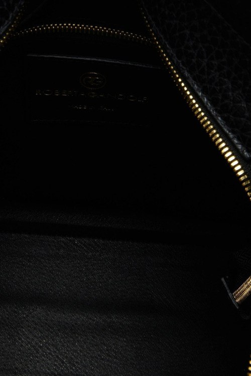 Детали: Женская черная кожаная сумка-тоут от Roberta Gandolfi (Робэрта Гандолфи). Модель из зернистой кожи, золотистая фурнитура, верхняя ручка, съемный плечевой ремень, застежка-молния, одно отделение, внутренний карман на молнии. Размеры: высота: 29 см, ширина: 34.5 см, высота ручек: 18 см, ширина по дну: 12 см
