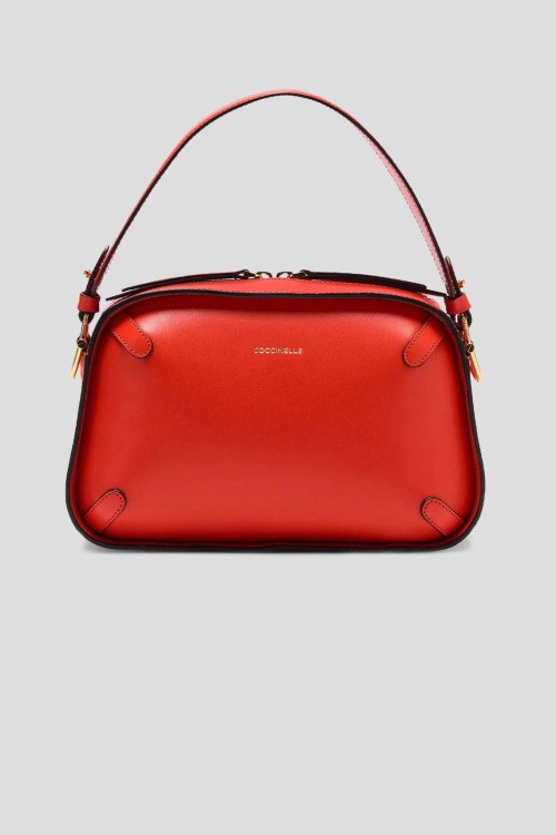 Детали: Женская коралловая сумка-тоут Maleta Calf Cocker из натуральной кожи от Coccinelle (Кочинелле). Одно отделение, застежка на молнию, верхняя ручка, съемный плечевой ремень, логотип бренда. Измерения: глубина: 8 см, высота: 17 см, ширина возле основания: 26,5 см