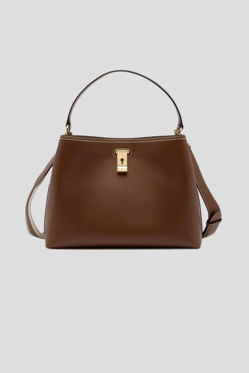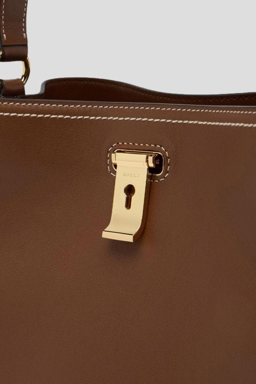 Детали: Женская коричневая кожаная сумка-тоут Lock Me от Bally (Балли). Модель из гладкой кожи, золотистая фурнитура, круглая ручка, съемный плечевой ремень, два отделения. Размеры: 30 х 22 х 11 см