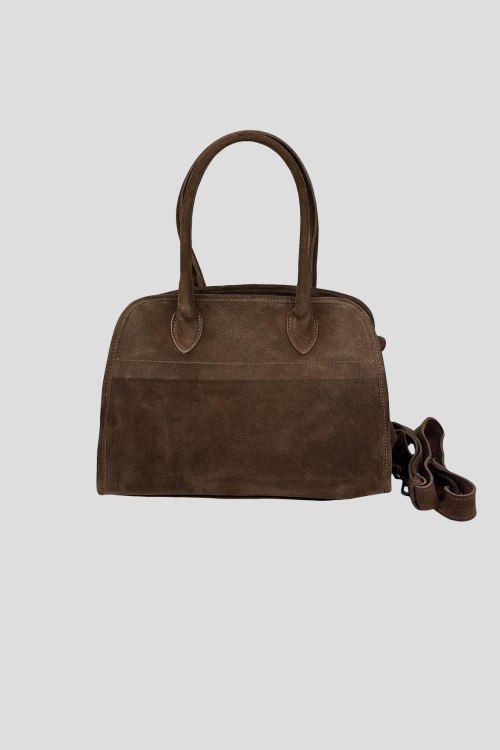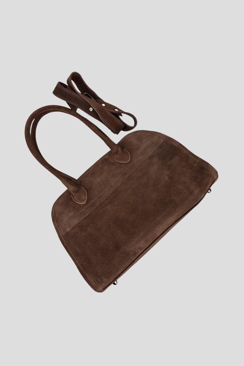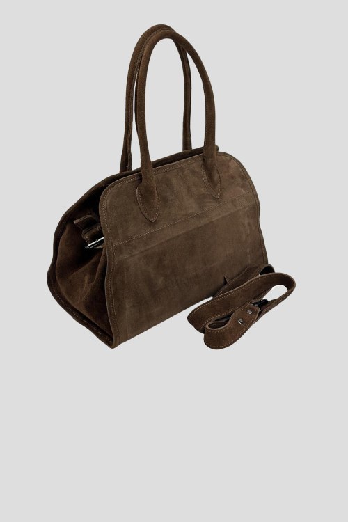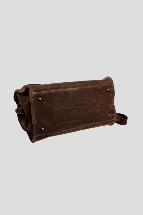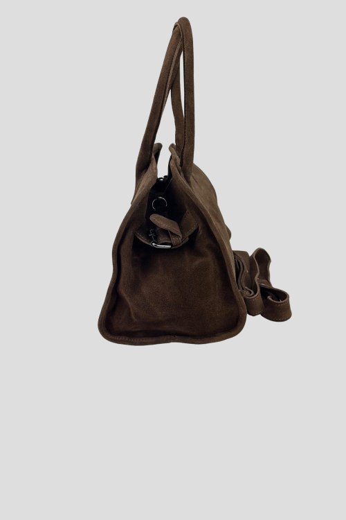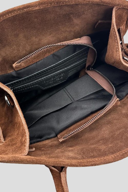 Детали: Женская темно-коричневая сумка-тоут из натуральной замши от Firenze Italy (Фирензе Итали). Одно отделение, застежка на молнию, внутренние карманы, две верхние ручки, съемный плечевой ремень. Размер: 31 x 21 x 14 см