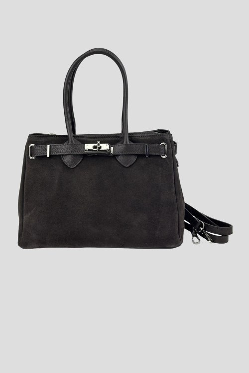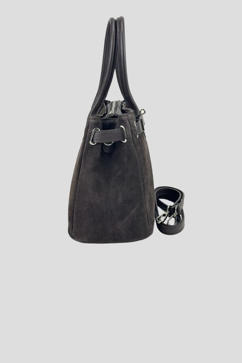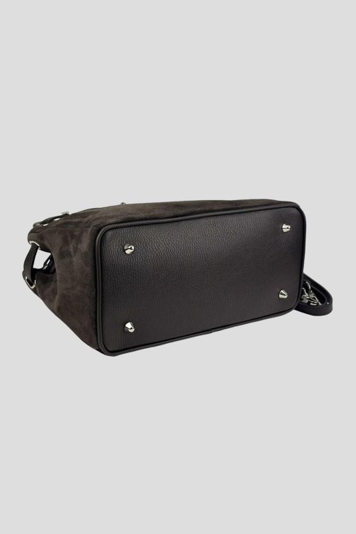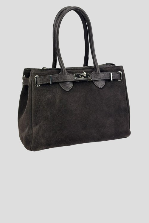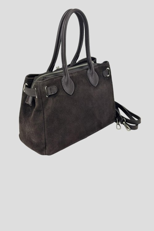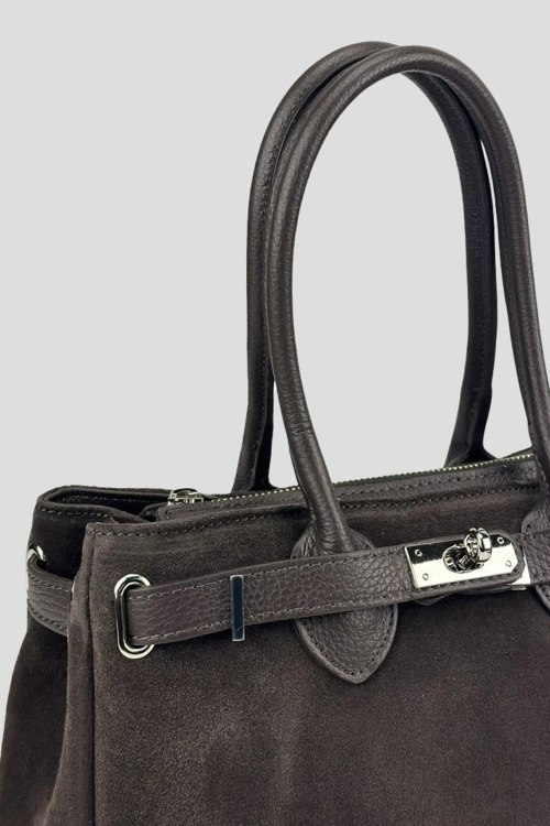 Детали: Женская темно-коричневая сумка-тоут из натуральной замши от Firenze Italy (Фирензе Итали). Два отделения, застежка на молнию, внутренние карманы на молнии, две верхние ручки, съемный плечевой ремень, металлические ножки. Измерения:30(28) x 21 x 13 см